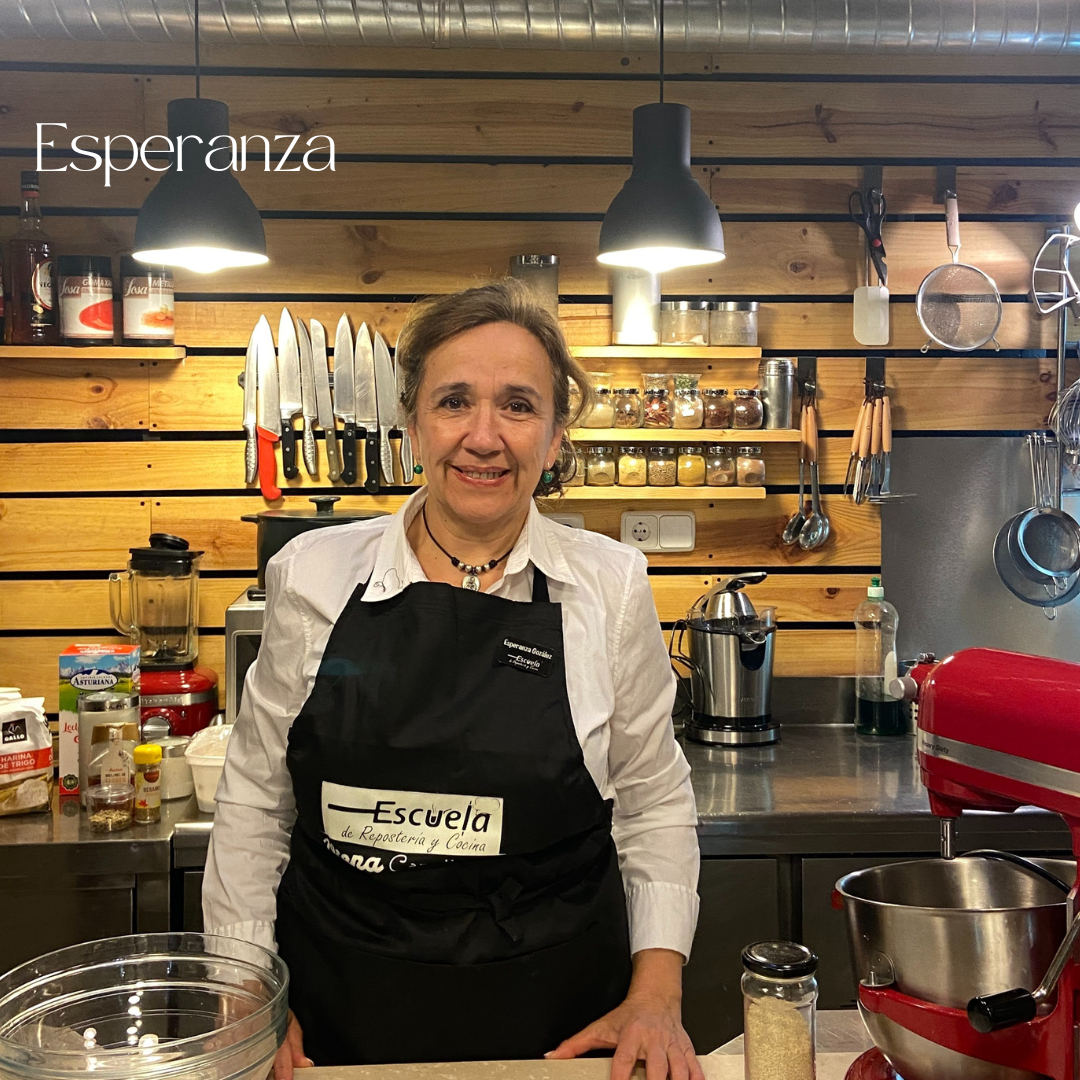 Sobre Esperanza, la repostería y las masas son su pasión, y tal y como ella lo describe, los aromas, las texturas y sabores, una liturgia en su cocina